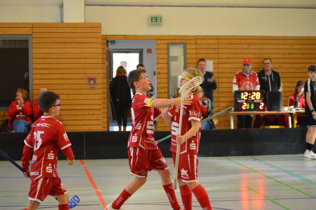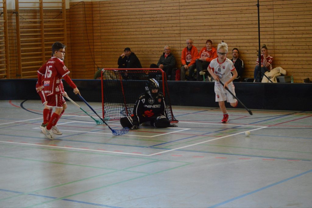 Ab der zweiten Hälfte war es an Bella, das Tor des UHC zu hüten. Gleich zu Beginn reagierte sie nach einem Konter blitzschnell und ließ den Angreifern des BSV keine Chance. In der 4. Minute wurde Jannik in Nähe des gegnerischen Tores unsanft von den Beinen geholt. Den fälligen Penalty verwandelte er eiskalt zum 8:0. Kurz danach konnte sich Odin nach schönem Zuspiel von Klemens in die Liste der Torschützen eintragen (9:0). In der 7. Minute konnte der Goalie aus Markranstädt den Schuss von Jannik noch blocken, der nächste Versuch zappelte aber in den Maschen (10:0). Nur eine Minute später erhöhte Ole auf 11:0, nachdem er sehenswert den Torhüter umspielt hatte. Der nächste Treffer des UHC war das Ergebnis einer schönen Passfolge. Hier lief der Ball flüssig zwischen Henry, Gregor und Jannik hin und her, bevor letzterer zum 12:0 einnetzen konnte. Kurz danach versucht Emil sein Glück. Aber eben dieses fehlte – erst ging der Ball an den Pfosten und wenig später an die Latte. In den letzten fünf Minuten des Spiels zeigte Bella erneut einige starke Paraden und hielt für ihre Mannschaft die Null fest. Das letzte Tor dieses Spiels (13:0) erzielte erneut Kapitän Jannik. Fazit: ein ungefährdeter Sieg mit einigen gefährlichen Konterangriffen der Markranstädter, die jedoch durch gute Abwehrarbeit und starke Torhüterleistungen vereitelt werden konnten.