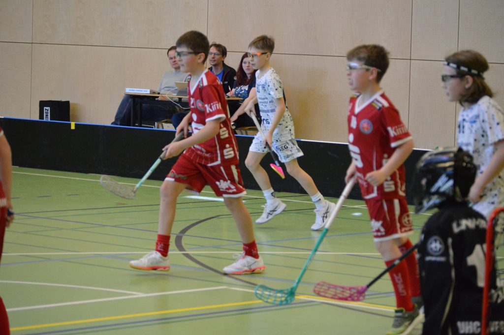 Im ersten Spiel unserer U11 ging es gegen Chemnitz blau. Hier gab es bereits in den ersten Minuten schöne Spielzüge zu sehen. So unter anderem von Fritz auf Emil Schulze, der das Tor leider knapp verfehlte. In der 2. Minute nutze Gregor einen Freistoß, um kurz auf Jannik zu passen, welcher den Ball schön ins rechte obere Eck schoss, sodass es bereits 1:0 für den UHC stand. Gerade einmal 10 Sekunden später erhielt der UHC erneut einen Freistoß, diesen versenkte Jannik direkt zum 2:0. In der 3. Minute hatte Emil Schulze erneut eine gute Chance, die er leider nicht ins generische Tor bringen konnte. Kurze Zeit später spielte Luis-Finn einen schönen Pass auf Jannik, der diesen nun im linken oberen Eck des Torwartes versenkte. In der 4. Spielminute gab es eine Zeitstrafe gegen den UHC wegen Bodenspiels. Trotz der Unterzahl hatte der UHC viel Ballbesitz und Torchancen. Nach einer guten Balleroberung traf Jannik zum 4:0 in der 10. Spielminute. Direkt im Anschluss versuchte Gregor zu erhöhen, der Ball blieb jedoch zwischen Arm und Körper des Torwartes stecken. Auch das Zusammenspiel lief super, so passte Ole, der mit dem Rücken zum Gegner stand, zurück auf Odin, dieser gab weiter zu Emil Schulze, welcher auf Leonard passte und zum Torschuss ausholte, dieses jedoch verfehlte. Die Spielzüge unserer U11 waren sehr schön anzusehen. In der 12. Spielminute gelang es nun endlich Emil Schulze das ersehnte Tor, nach einer Vorlage von Ole zu erzielen und erhöhte auf 5:0. Auch Conrad und Klemens hatten schöne Chancen, welche das Tor nur knapp verfehlten.
