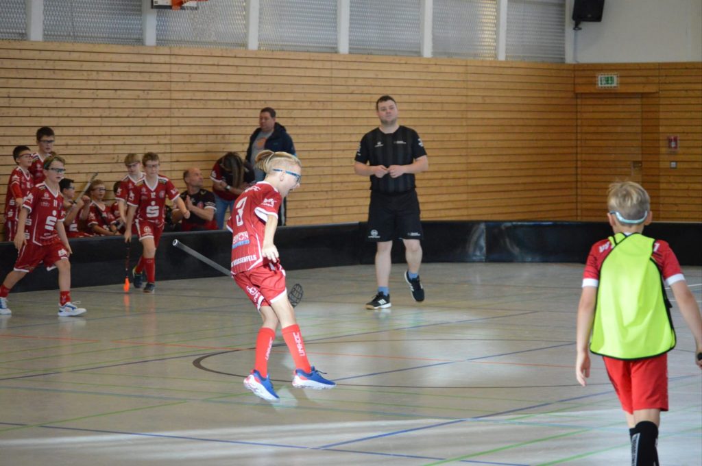 Erst in der 5. Minute der zweiten Hälfte war es wieder an Klemens den Reigen zu eröffnen. Er umspielte die Gegner mit Gregor und Luis-Finn sehr gekonnt und war zur Krönung zum 8:1 treffsicher. Die Floor Fighters versuchten noch in der selben Minute den Anschluss zu halten und füllten zum 8:2 auf. Ab der 8. Minute war es nochmal am UHC den Spielstand zu erhöhen. Bis zur letzten Minute füllten die Jungs die Torbilanz weiter auf. Emil machte den Auftakt, es folgten Jannik (insgesamt noch 4 Tore), Ole im alleinigen Durchmarsch und Henry K. Dabei fiel das 15:2 in der letzten Minute durch Kapitän Jannik mit Klemens. Mit dieser starken Bilanz gingen die Jungs um Bella in die Kabine und hatten nun zwei Spiellängen Pause, ehe es im letzten Spiel des Heimspieltages gegen die 07 Zwigge- Zwerge weiter gehen sollte.