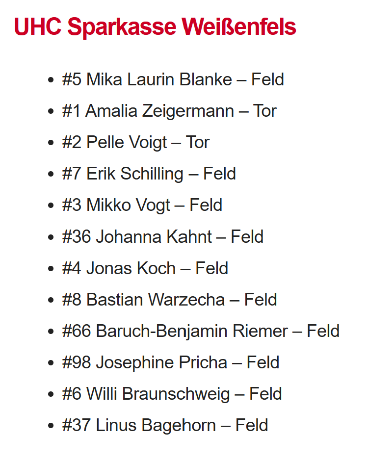 Heute, am 30. November, ging es für die Mannschaft aus Weißenfels in die eigene Halle, um dort die Gäste des MfBC Leipzig zu empfangen. Das erste Drittel startete und beide Teams erwischten einen langsamen Start. Auf beiden Seiten gab es Chancen, das erste Tor zu schießen, allerdings war es der MfBC, der als Erstes jubeln durfte. So gelangten sie bereits in der 9. Minute in Führung. Es dauerte nicht lange und die Gäste durften wieder jubeln. Diesmal in der 12. Minute. Danach war erstmal Ruhe. Es gab ein paar Abschlüsse auf beide Tore, aber es passierte nichts, bis die Heimmannschaft aus Weißenfels in der 19. Minute eine 2-Minuten-Strafe wegen Stockschlags erhielt. Die Strafe erstreckte sich bis in das 2. Drittel hinein, jedoch konnte das Team aus Weißenfels den erneuten Treffer verhindern. Danach folgten nicht viele Aktionen nach vorne, bis der Gegner schließlich in der 13. Minute erneut traf und es nun 0:3 stand. In der restlichen Zeit des 2. Drittels passiert nichts Weiteres. Es gab ein paar Aktionen nach vorne durch beide Mannschaften, allerdings konnte keiner noch vor Ablauf der Zeit vom 2. Drittel das Tor treffen. Durch eine motivierende Ansprache in der Kabine ging die Mannschaft aus Weißenfels auf das Feld, um das Spiel noch zu drehen. So gab es in der 3. Minute eine 2-Minuten-Strafe gegen den Gegner und nun hatte das Heimteam die Chance, aufzuholen. Doch durch aktive Störungen des Gegners konnte das Team nicht viele Schüsse aufs Tor bringen. Nach der Strafe gab es den Rückschlag für Weißenfels. Wenige Sekunden nach dieser traf der Gegner erneut und nun stand es 0:4. Man versucht alles, um die Gegner zu stoppen, doch es hat nichts gebracht. Nur 2 Minuten später jubelte der Gegner erneut.