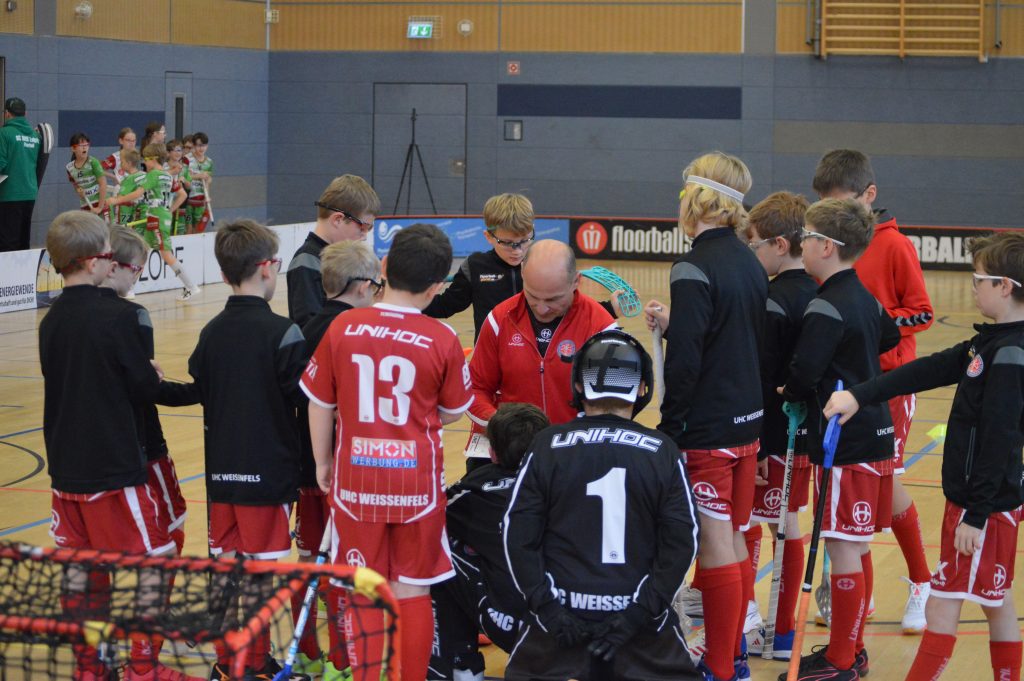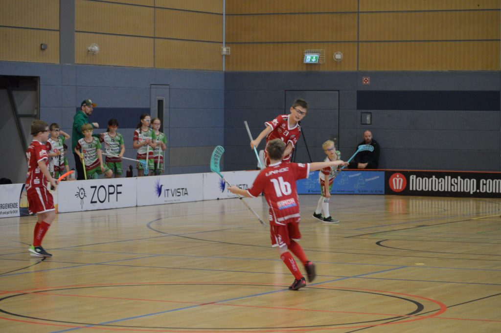 Sofort im Anschluss mussten die Tabellenführer gegen die Floorball Pinguine Jena antreten. Unbeirrt von der nur kurzen Pause ging es sofort rund im Netz der Gegner: Jannik nach 11 Sekunden und Luis- Finn ebenfalls noch in der ersten Spielminute nach Janniks Vorlage in einem tollen Spielzug mit Klemens aus der Abwehr. Dann folgten drei Tore von Jannik bis zur 5. Minute, wobei das letzte dieser Serie ein trickreich versenkter Penalty war. In der 5. Minute schafften die Thüringer ihr erstes Tor gegen uns und es sollte nach offiziellem Spielstand auch das Einzige bleiben. Davon ließ sich Ole nicht aus der Ruhe bringen und füllte die Trefferbilanz nach einem tollen Spielzug mit Emil Schulze weiter auf. Schließlich machte Jannik mit zwei Toren weiter, ehe auch Leonard in der 8. Minute zum 9:1 aus UHC-Sicht traf. Das minütliche Tore- Schießen geht bis zum 16:1 weiter, dabei traf zum 10. Tor Henry Keikott, dann Jannik mit dem Bauerntrick, Ole zum 12:1, Luis-Finn und nochmal Jannik nach Klemens Vorlage zum 14:1. Auch der “kleine” Emil (Koch) aus der U9 war zum 15:1 erfolgreich, ehe nochmal Jannik das letzte gezählte Tor holte. Da nun eine Tordifferenz von 15 erreicht war, wurde alle übrigen Treffer beider Seiten offiziell nicht gewertet. Noch im ersten Drittel fiel das inoffizielle 17:1 durch Jannik.